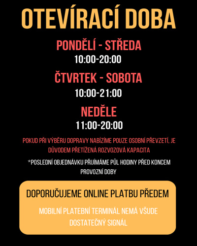 Proto si vyhrazujeme právo, ukončit další příjem objednávek před koncem rozvozové doby. Zákazník bude o této situaci informován.