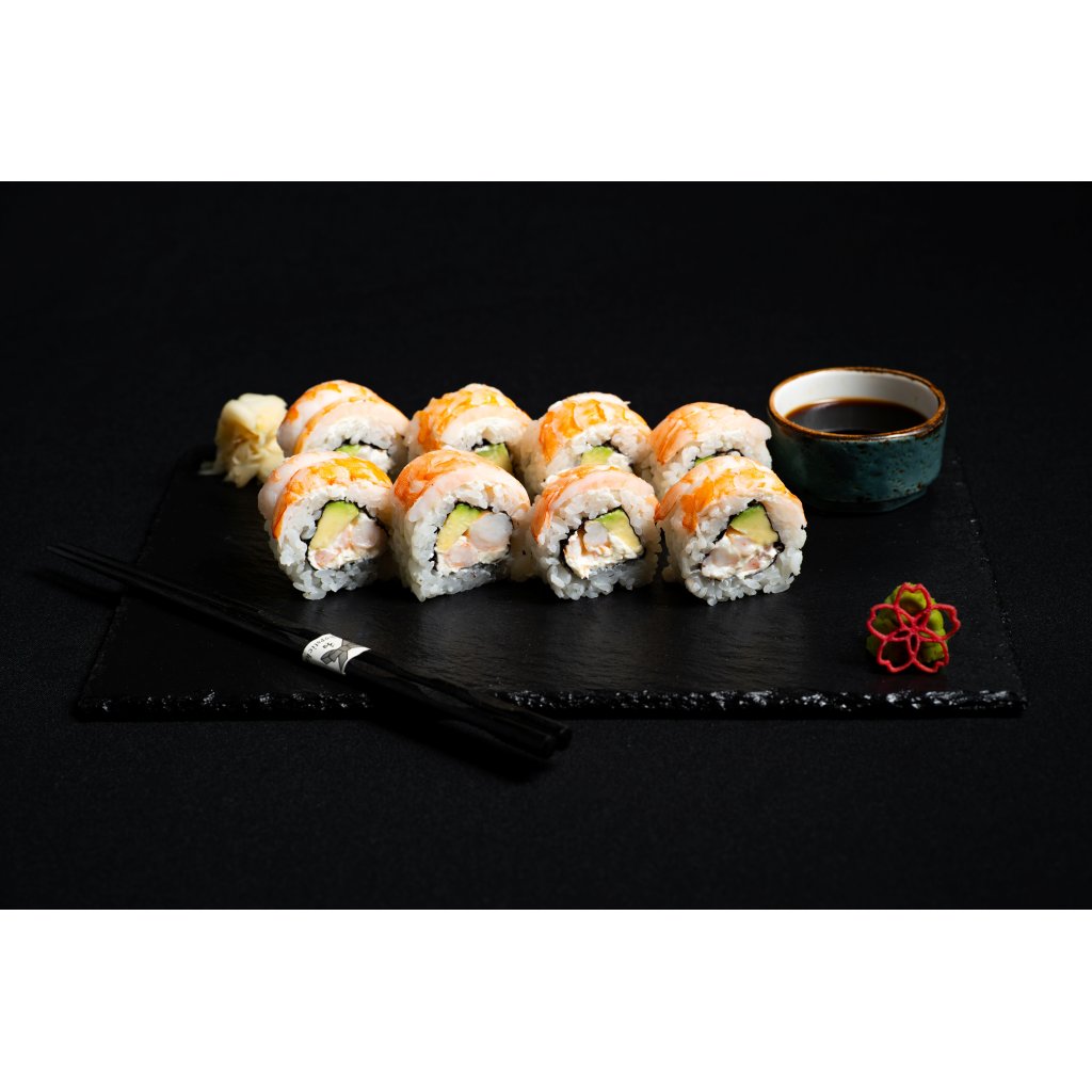 Rolka plněná šťavnatými krevetami, krémovým sýrem Philadelphia a avokádem. Na povrchu zdobená dalšími krevetami a dokončená krémovou unagi omáčkou pro sladko-slaný tón.