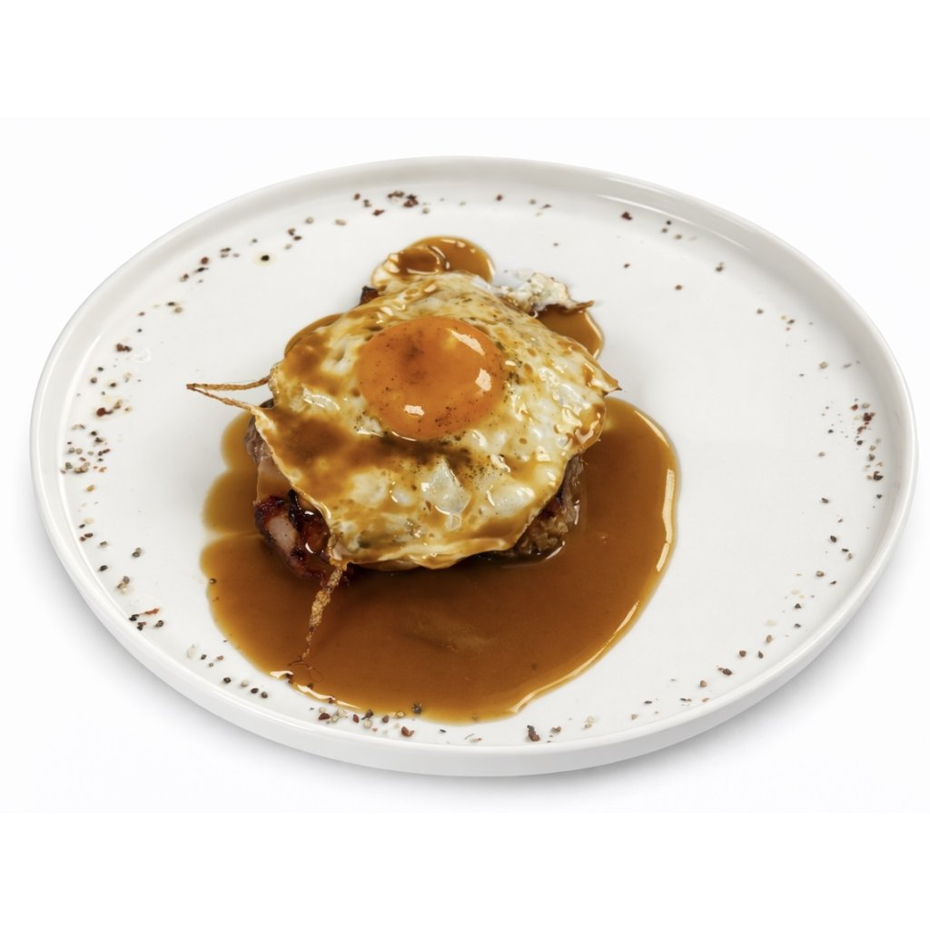1ks Steak z krkovice 250g se sazeným vejcem a anglickou slaninou