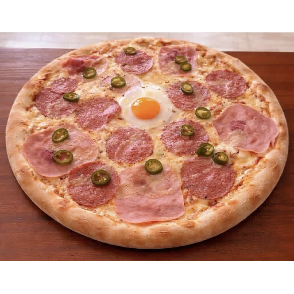 rajčatová směs, sýr, salám, šunka, vejce, jalapeňo, česnek