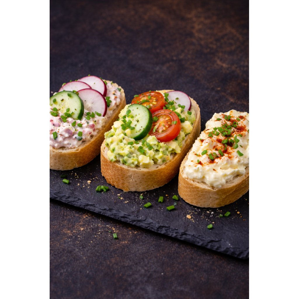 Elegantní kanapky plné svěžesti a chuti! Perfektní kombinace ředkvičky, avokáda a sýru potěší vaše smysly při každém soustu. Min množství 30 ks.