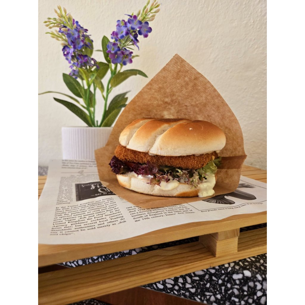 Smažený sýr, kyselá okurka, rajče, salát, domácí tatarka